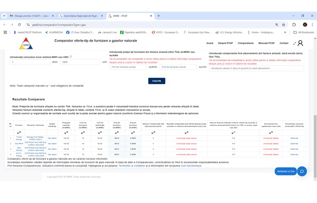 Dacă urmărim pagina ANRE – Comparatorul de preț la gaze – după data de 1 aprilie 2025 constatăm că există oferte de la 4 firme care în fapt sunt deținute de același acționar, ofertele fiind 100% identice până la ultima virgulă și având toate prețul de 0,31 lei/kWh cu TVA inclus, prețul fiind valabil până în septembrie 2025.