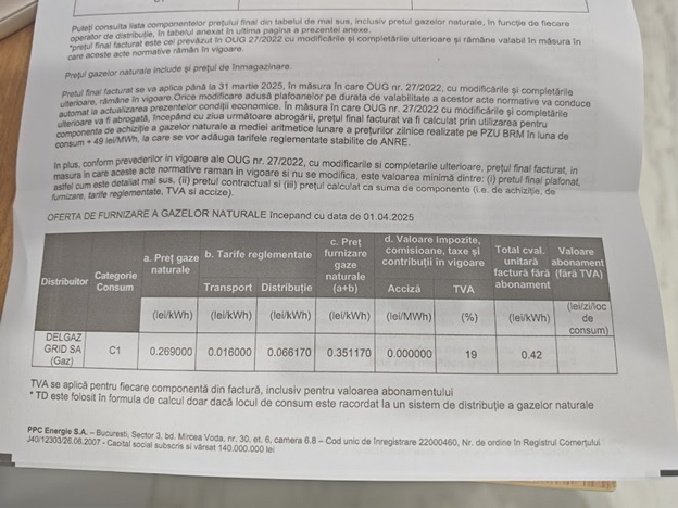 În același timp consumatorii PPC au primit ofertă pentru prețul gazelor naturale începând cu data de 1 aprilie 2025 în valoare de 0,42 lei/KWh. În lipsa oricărei discuții privind liberalizarea pieței, consumatorii se vor trezi în mod tacit cu creșteri de preț de 35%, urmare a unor prevederi din Codul Civil .