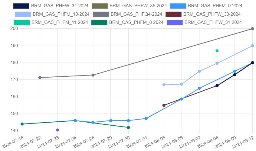 Cotațiile pentru trimestrul IV sunt de 42 euro/MWh pe bursa de gaze din Olanda și de 200 lei/MWh (40,24 euro/MWh) pe BRM. În același timp există analiști care vorbesc ca prețul gazelor în iarnă să reatingă pe bursa din Olanda, prețul din iarna 2023-2024, respectiv 50-55 euro/MWh. Având în vedere că prețul gazelor de pe piața din România urmărește evoluția prețului de pe bursa din Olanda, un preț de tranzacționare în iarnă în România este să fie la un nivel de 250 – 275 lei/MWh.