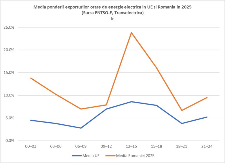 Datele agregate pe 2025 arată clar: 26% din importurile anuale se concentrează în intervalul 18–21, adică exact în vârful de preț. În schimb, exporturile sunt concentrate în intervalele cu cererea mai mică și prețuri mai reduse, în special 12–15 și în timpul nopții.