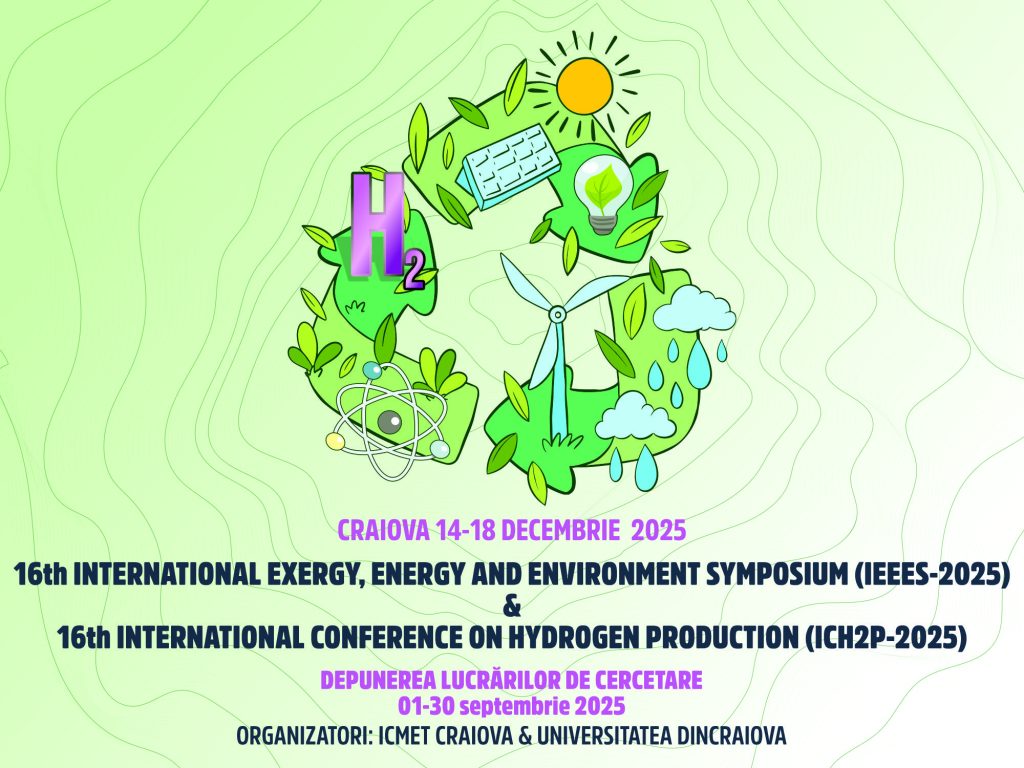 Institutul Național de Cercetare-Dezvoltare și Încercări pentru Electrotehnică ICMET și Universitatea din Craiova organizează în perioada 14-18 decembrie 2025, la Craiova, Conferință Internațională privind Producția de Hidrogen – ICH2P 2025 și Simpozionul Internațional de Exergie, Energie și Mediu – IEEES 2025, ambele manifestări ajunse la ediția cu numărul șaisprezece.