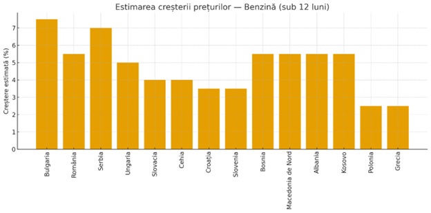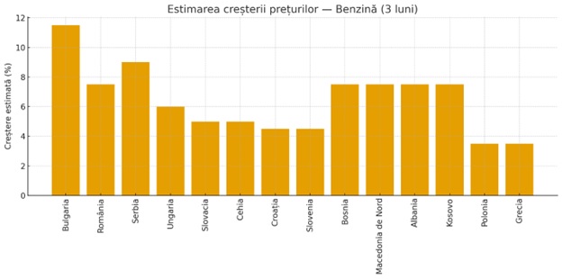 Estimările arată că în primele trei luni prețul benzinei ar putea crește cu 8–15%, iar al motorinei cu 10–18% , cu o normalizare lentă abia după un an.