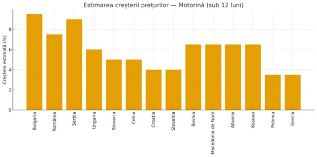 Creșterile estimate sunt mai moderate: 5–10% la benzină în primele trei luni și 7–12% la motorină. Totuși, presiunea se transmite rapid prin piața regională, unde fluxurile rusești încă joacă un rol semnificativ.
