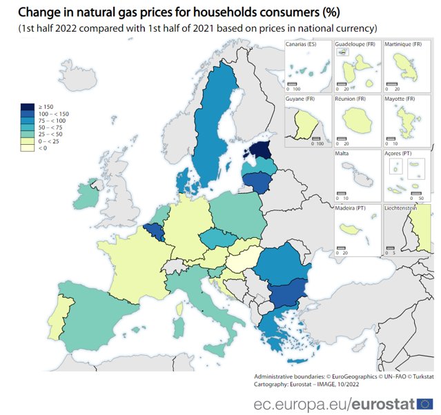 Atenționam în 25 februarie 2022 că Măsurile de scădere a prețurilor la gaze ale autoritățiilor, vor aduce prețuri mai mari la consumatori cu până la 130% (vezi aici). Astăzi ne dăm mirați, când Eurostatul arată că prețul gazelor în România a crescut cu 165%.