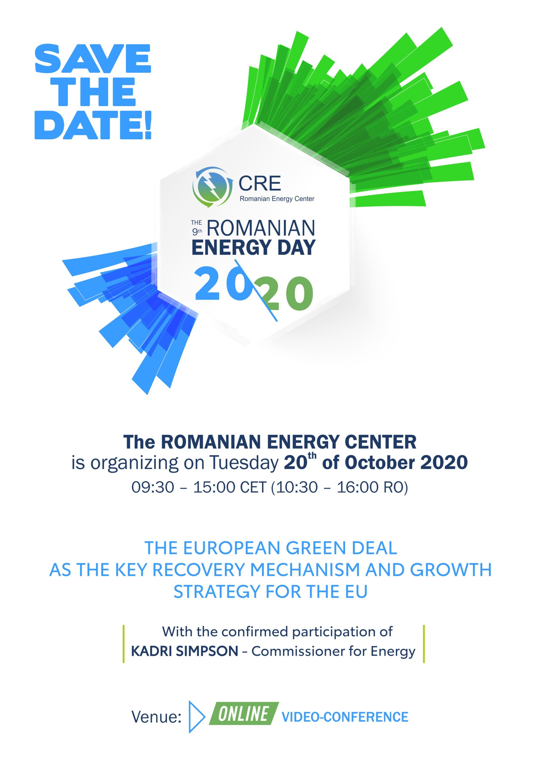 Centrul Român al Energiei organizează marti, 20 octombrie 2020 orele 10.30 – 16.00, evenimentul online ROMANIAN ENERGY DAY – GREEN DEAL – PRINCIPALUL MECANISM DE REDRESARE ȘI STRATEGIE DE CREȘTERE PENTRU UNIUNEA EUROPEANĂ.